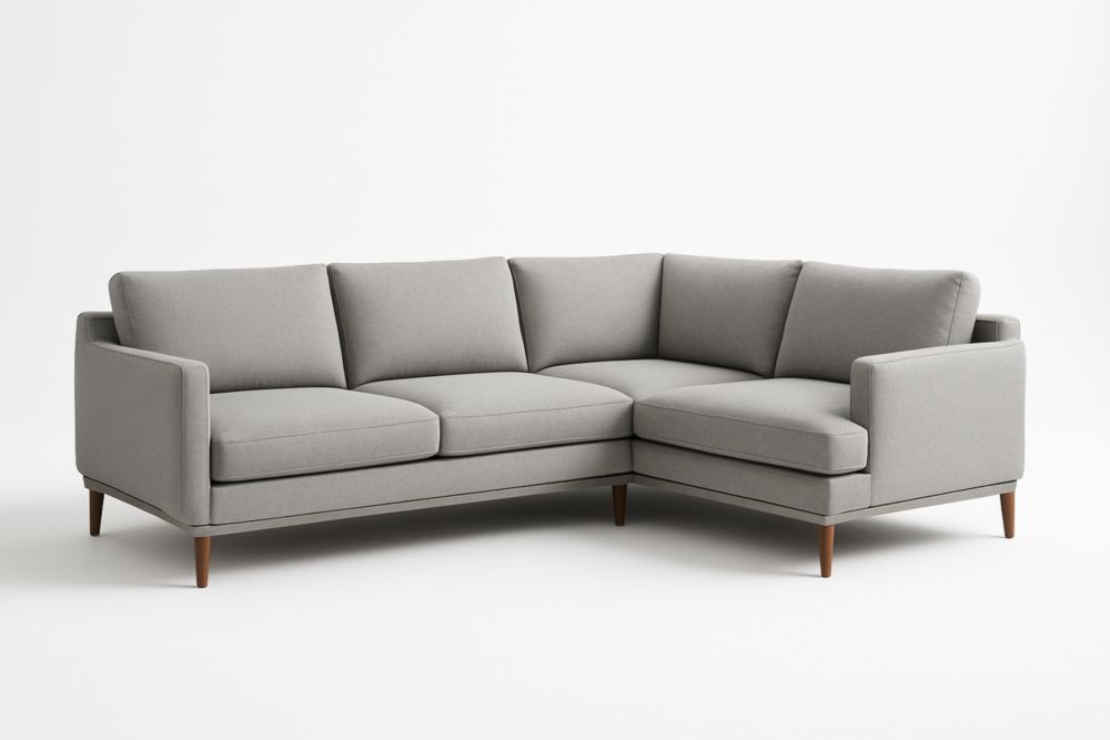 Un divano angolare rivestito in tessuto poliestere marrone, con solide gambe in legno. La lunghezza di 260 cm lo rende adatto a soggiorni di diverse dimensioni, offrendo spazio e comfort per l’uso quotidiano.